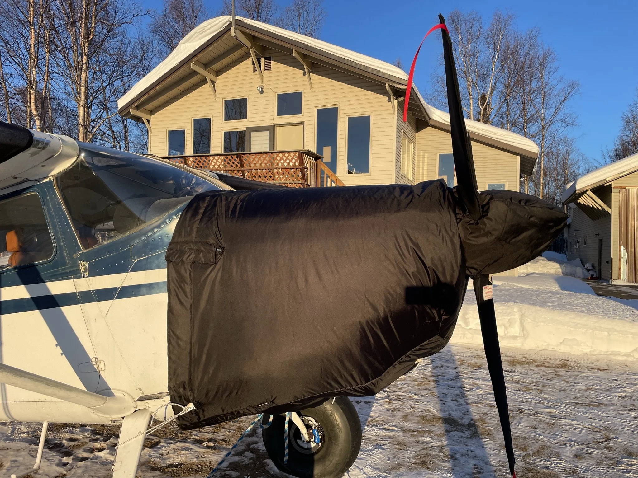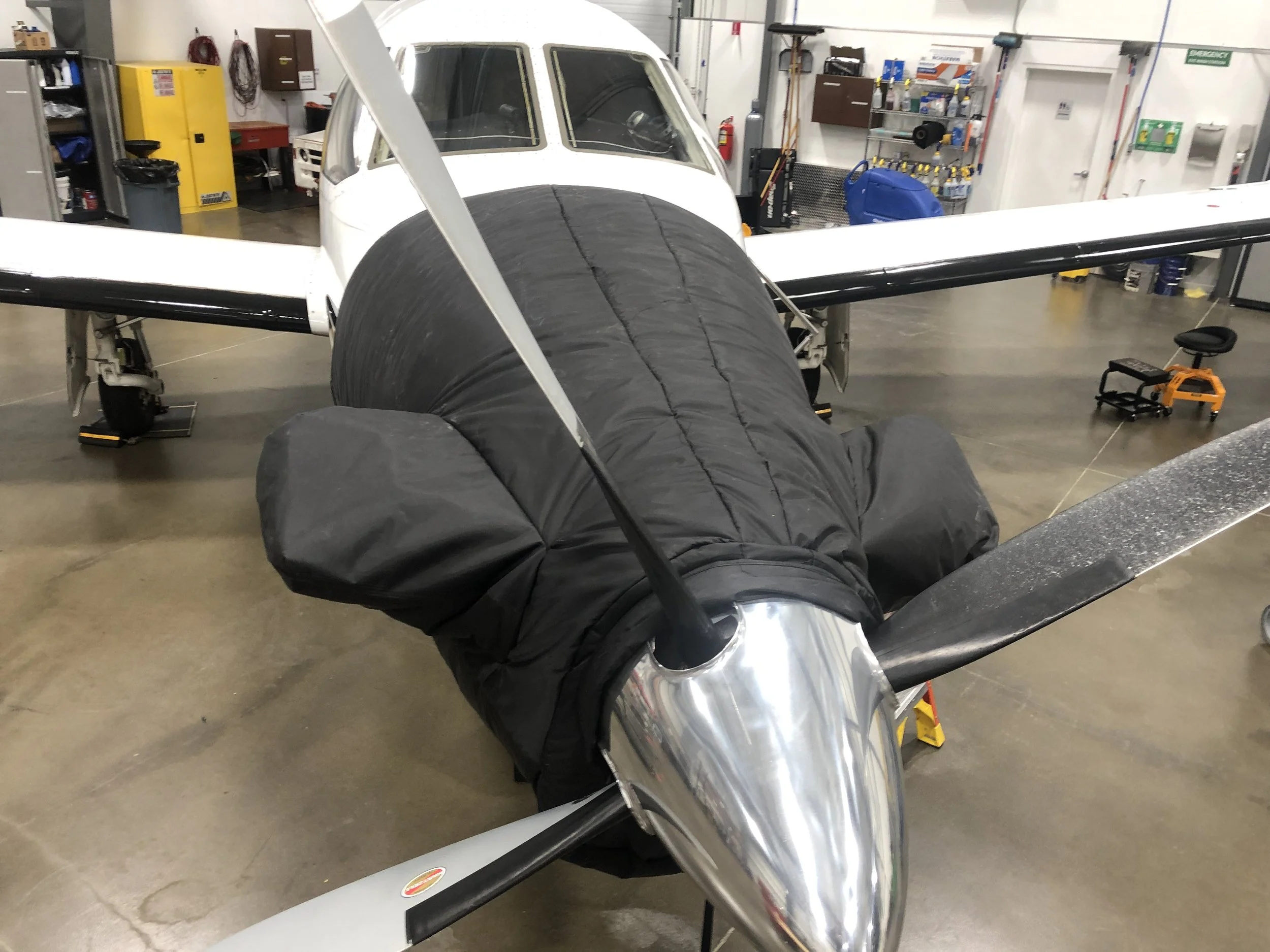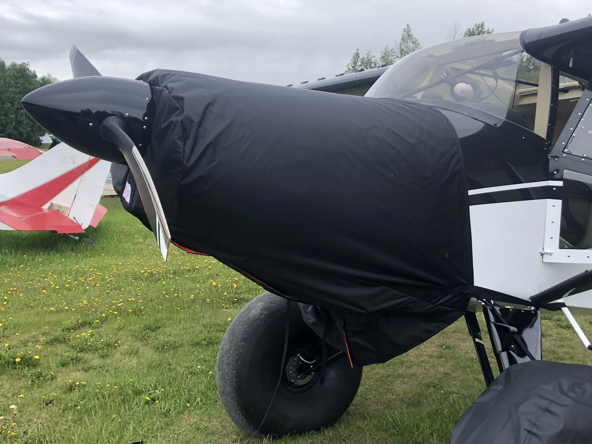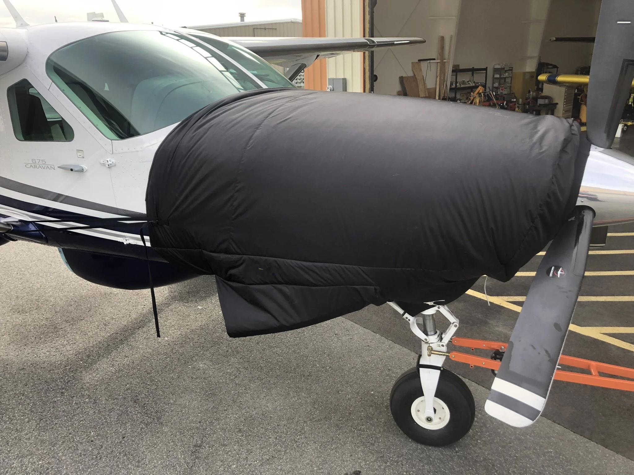 Aircraft engines have no tolerance for starting in cold temperatures and are costly to replace. Preheating to operating temp is essential as is maintaining that heat between flights. Minimizing airflow is key to maintaining that heat. Our engine covers fit snug to minimize airflow and maintain that heat, We utilize several key features in the construction of each cover even if the application is unique. Our covers are custom made to your particular aircraft. Like our other products, they are available in blue, red and of course, black. Our covers include insulation made of a Hollowfill type material and we line the inside of all of our engine covers with International Orange.